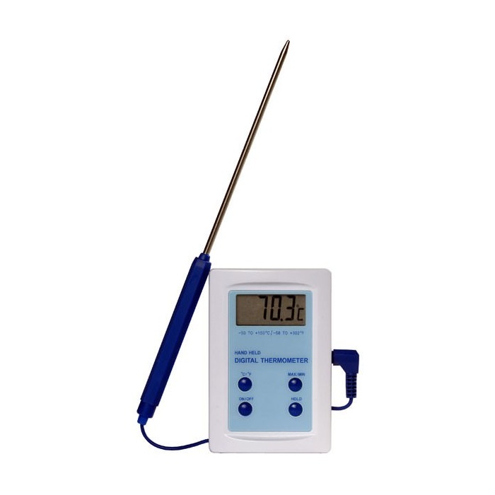 Each instrument is supplied with a detachable stainless steel penetration probe (Ø3,5 x 120mm) with a one metre PVC connecting lead and probe cover.
